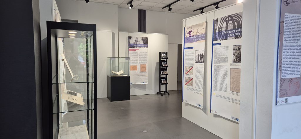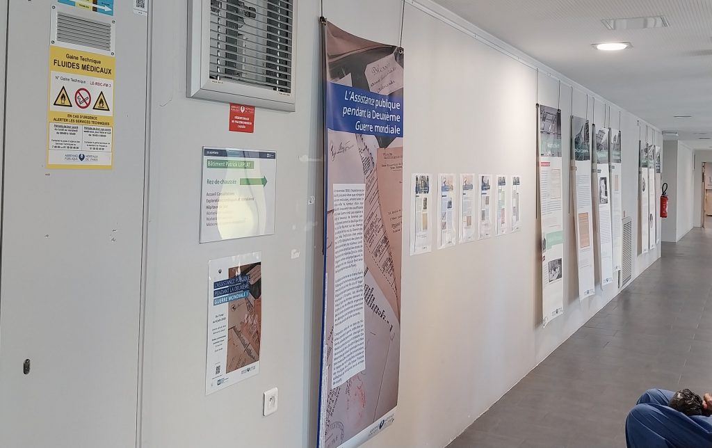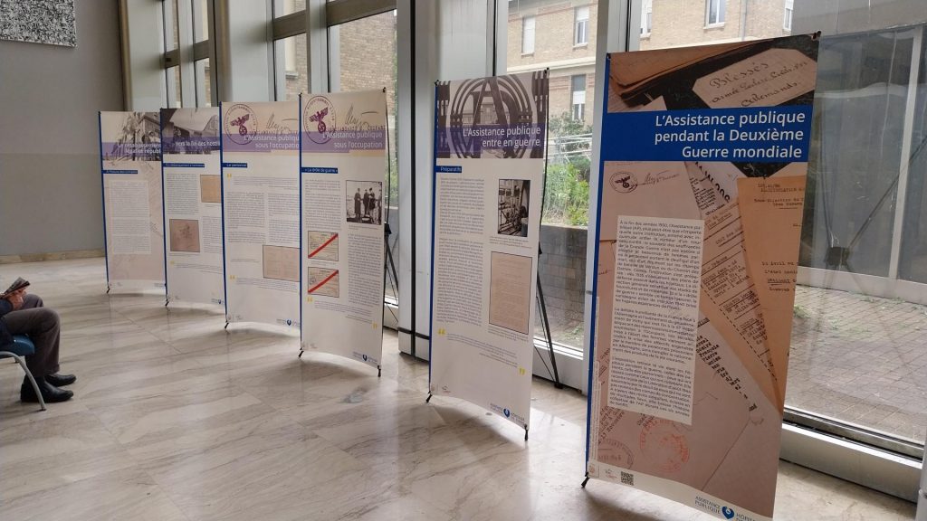 Cette exposition, composée de 37 panneaux, est présentée simultanément sur les différents sites, à la manière d’une mosaïque. Une partie générale retrace la vie de l’Assistance publique de l’entrée en guerre, jusqu’à la fin des hostilités et le rétablissement de la légalité républicaine, en passant par l’occupation, ses nombreuses réquisitions de bâtiments ainsi que les lois successives du gouvernement de Vichy et leurs répercussions sur le personnel.